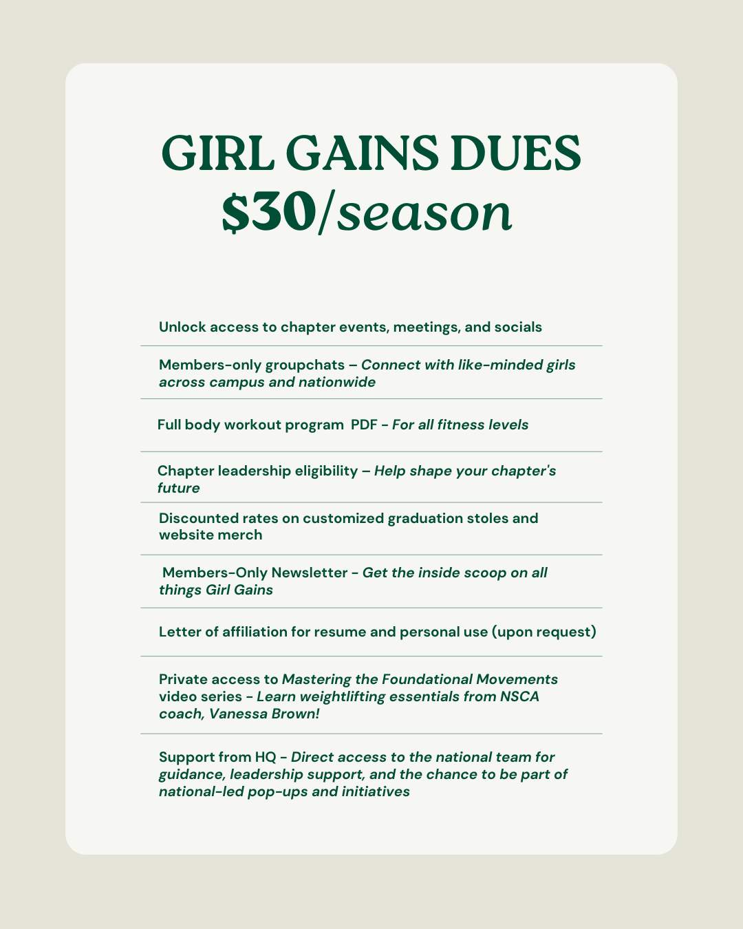 - 🎉 Start attending Girl Gains Chapter events and meetings!